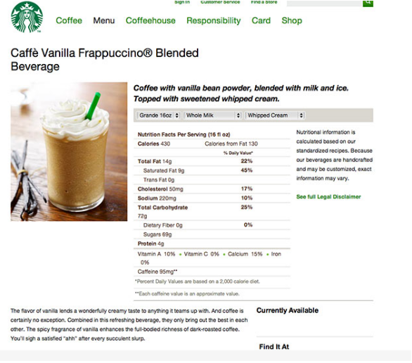 產(chǎn)品詳情頁(yè)對(duì)于電商網(wǎng)站非常重要,產(chǎn)品信息必須在保證真實(shí)的基礎(chǔ)上,優(yōu)化細(xì)節(jié),盡可能的誘人,這樣才能有效的吸引顧客。比如星巴克的產(chǎn)品頁(yè)面,不僅有誘人的實(shí)體展示,有很多不同口味的飲品讓你選擇,這樣讓用戶有很大的選擇空間,用戶自然而然就會(huì)高興咯。