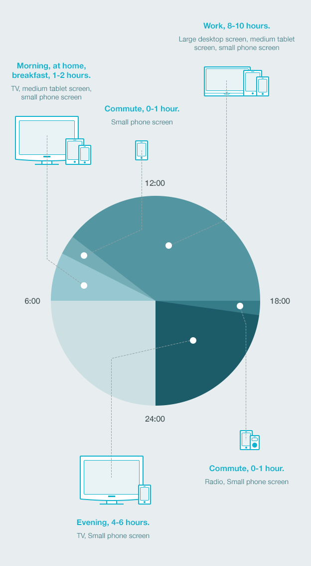 不同的設(shè)備組合通常是基于不同的場(chǎng)景、需求和服務(wù)來(lái)構(gòu)成的,用戶(hù)會(huì)針對(duì)不同的屏幕進(jìn)行不同模式的交互,甚至處理的內(nèi)容也會(huì)有差異。比如說(shuō),在手機(jī)上,用戶(hù)更加傾向于使用輕量級(jí)的任務(wù),并且進(jìn)行一定量的溝通和交流。在平板上,用戶(hù)行為更多集中在內(nèi)容消費(fèi)上,并且目前平板的使用量被認(rèn)為在逐步降低。桌面端依然是用戶(hù)完成較為專(zhuān)業(yè)、復(fù)雜任務(wù)的首選平臺(tái),足以應(yīng)付復(fù)雜多樣的內(nèi)容。了解各種設(shè)備類(lèi)型和使用場(chǎng)景是用來(lái)構(gòu)建用戶(hù)體驗(yàn)的關(guān)鍵。