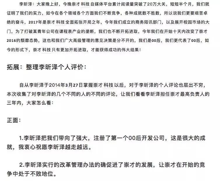 如果從產(chǎn)品、業(yè)務(wù)的角度來衡量崇才科技還不算一家成功的公司話,從品牌、公關(guān)的角度來看,李昕澤這么小的年紀,能做到如此境界,已經(jīng)秒殺了不少公關(guān)公司。