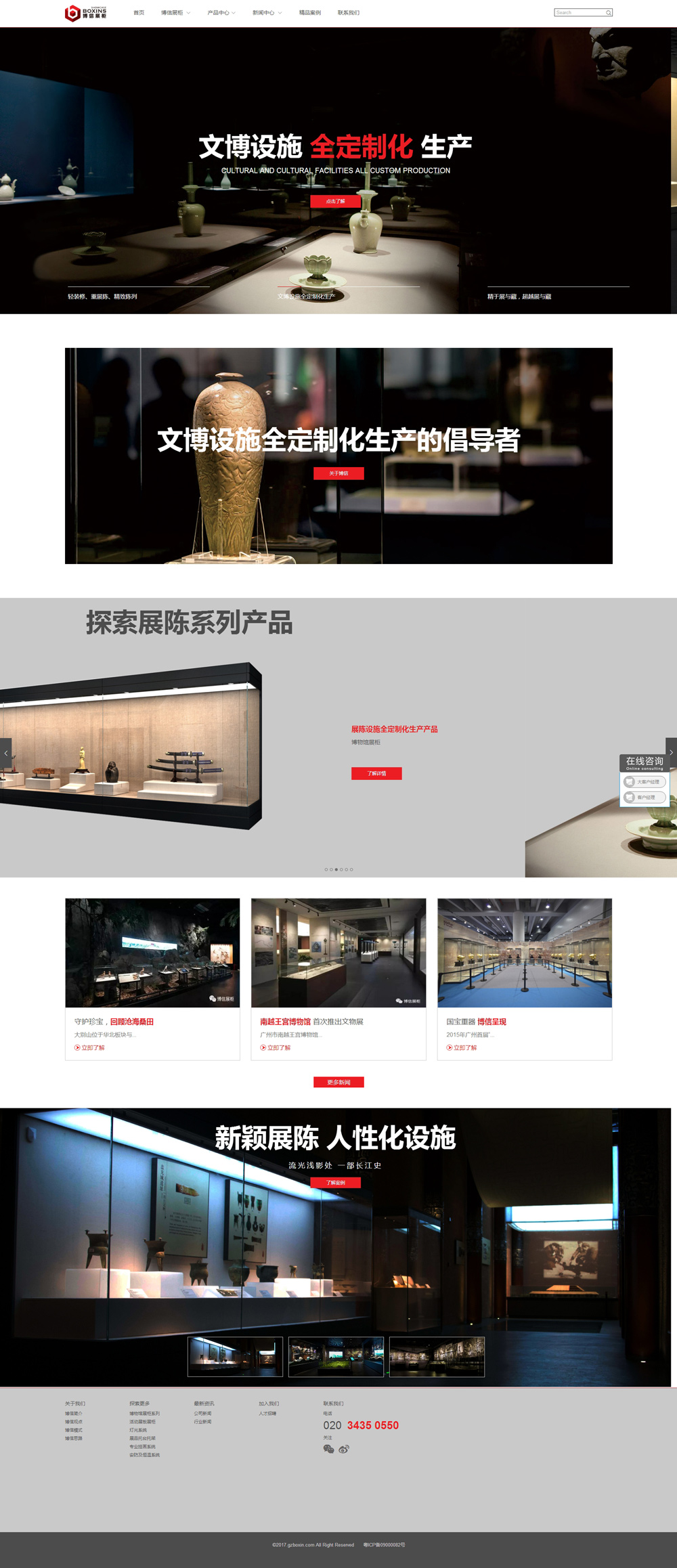 廣州博信展柜有限公司以匠人之心營(yíng)文化事業(yè),以深度之專業(yè)展藏文物精彩,以產(chǎn)業(yè)之模式提升行業(yè)水準(zhǔn),博信始終站在國(guó)家文化建設(shè)的高度,秉承著文博事業(yè)的精神與情懷,執(zhí)著于自己的產(chǎn)品研發(fā)與生產(chǎn),已將業(yè)務(wù)全面覆蓋到博物館、美術(shù)館、主題展覽館等文化展館的各類文博設(shè)施之中,范圍遍及全國(guó)30多個(gè)省市,已然成為華南地區(qū)首屈一指的專業(yè)文博設(shè)施領(lǐng)域的科技創(chuàng)新企業(yè)。