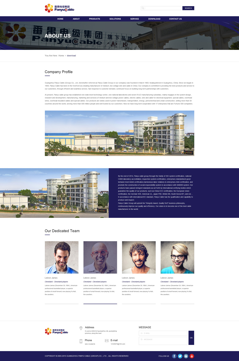 Guangzhou Panyu Cable (Group) Co., Ltd. (hereinafter referred as Panyu Cable Group or our company) was founded in March 1969, headquartered in Guangzhou, China. Since we began in 1969, Panyu Cable has been in the forefront as a leading manufacturer of medium, low voltage wire and cable in China. Our company is committed to providing the best products and service to our customers, through efficient and seamless service, fast response to customer demand, continued focus on building long-term partnerships with customers.